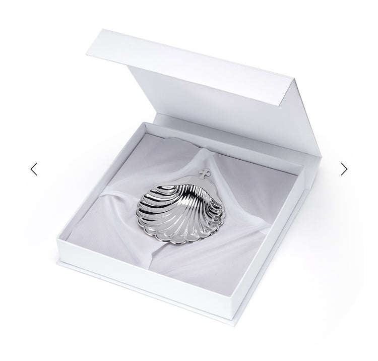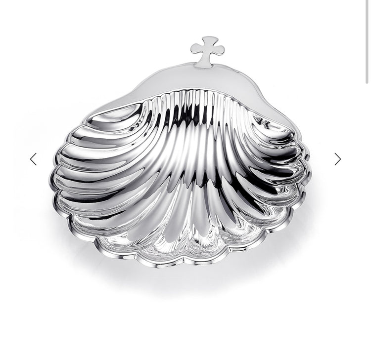 Concha de Bautismo con cruz, realizada en plata de primera Ley 925.