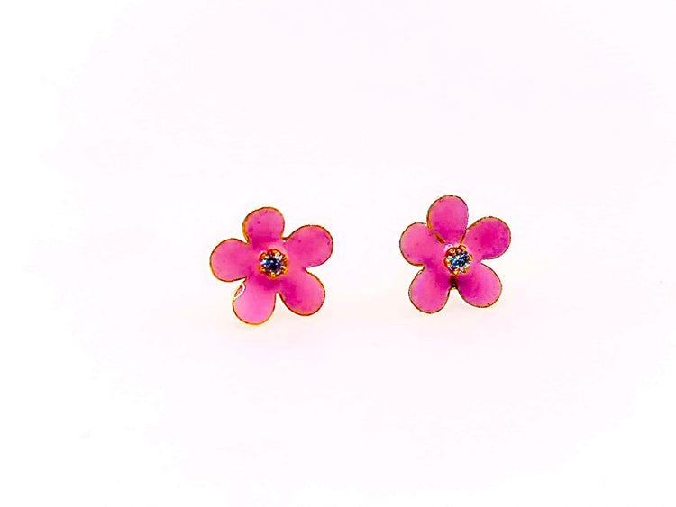 Pendientes de niña de flor de esmalte rosa
