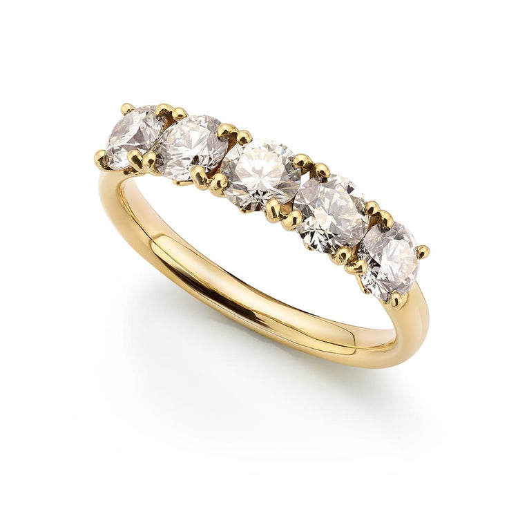 Anillo de oro amarillo de 3,600g en brazo oval y 5 diamantes en corona de garras de 1,540ct.