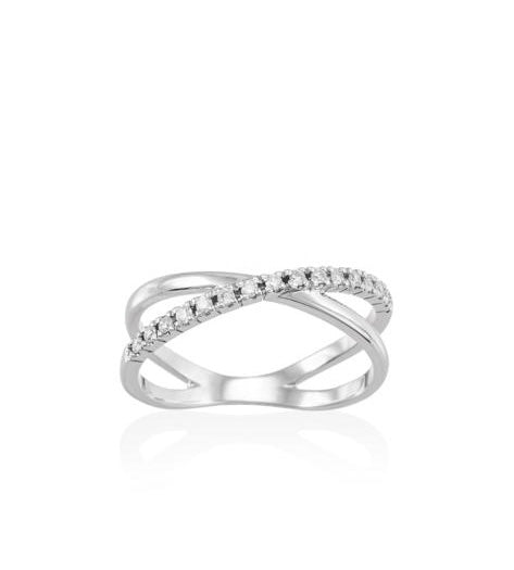 Anillo de oro Blanco cruzado con diamantes