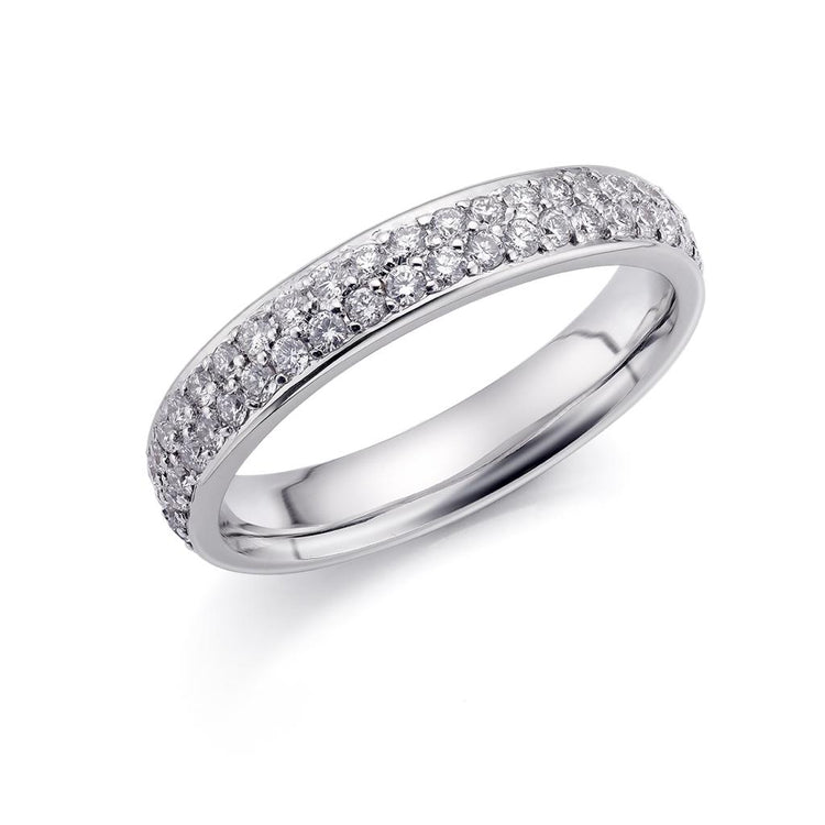 Anillo de oro blanco de 4,700 g. Alianza completa de diamantes de 1,100 ct.