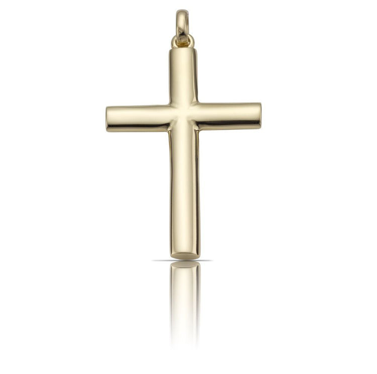Cruz de oro amarillo de media caña y medidas 34x21 mm.