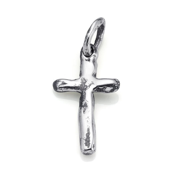 Cruz  de palo martelé, realizada en plata maciza y medidas 20x13 mm.