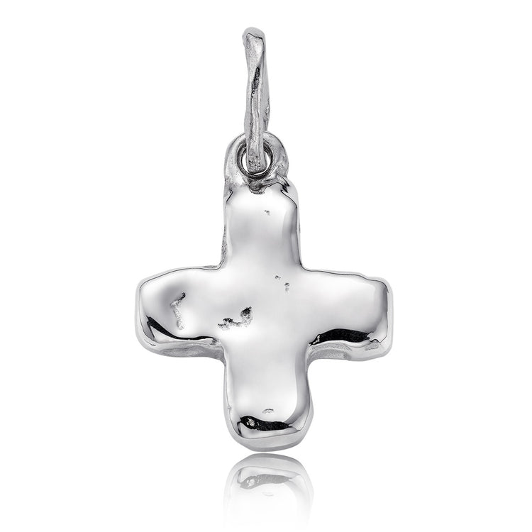 Cruz de plata martelé.  Medidas 18 x 18 x 6 x 4 mm.