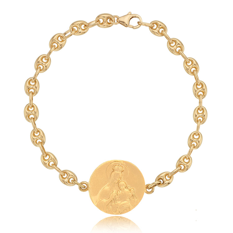 Pulsera escapulario de oro amarillo con medalla de la Vírgen del Carmen y el Sagrado Corazón, de 18 mm. y cadena de calabrote hueco, de calibre 5,00 mm