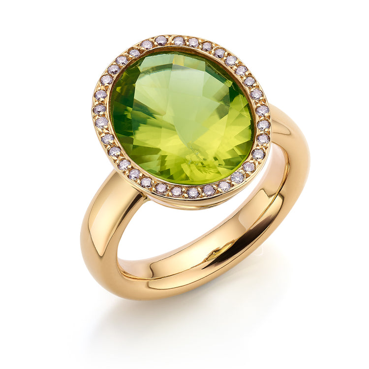 Anillo de cuarzo limon tallado de 14 x 11,5 mm y orla de diamantes brown de 0,38ct. Medida de dedo 6 (US) 13 (ESP)