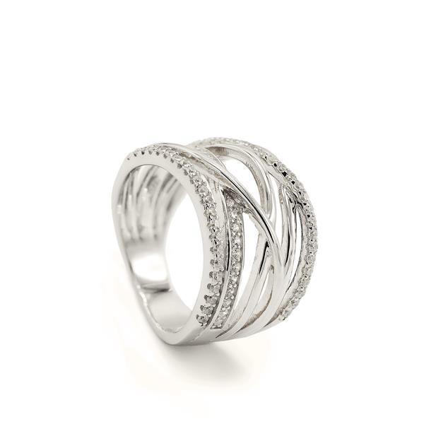 Anillo Laberinto plata y circonitas ancho