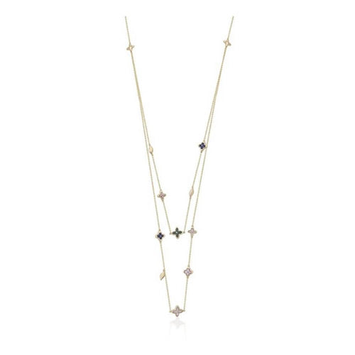 Collar de doble Cadena de plata de primera ley con baño de oro amarillo 18k y piedras.
