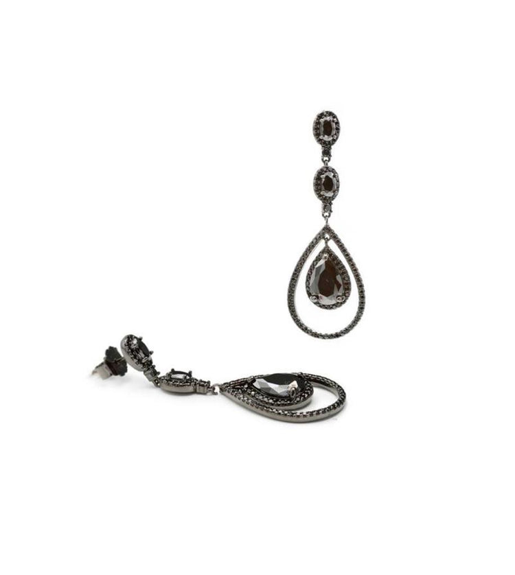 Pendientes de plata925 rodiada negra con 3 circonitas negras  centrales y cuajados de otras más pequeñas alrededor.