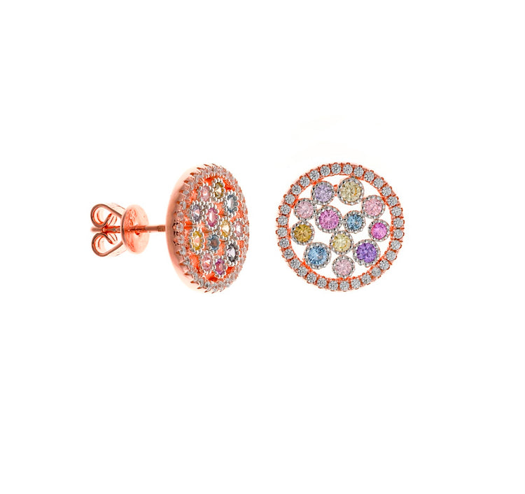 Pendientes de plata bañados en oro rosa pegados de circulo de circonitas de colores