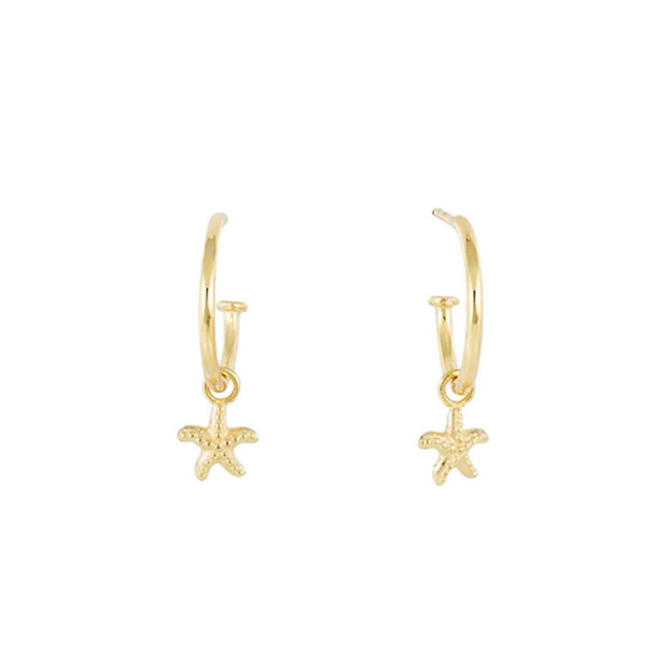 Pendientes de plata de aro con Estrella de Mar colgando y circonitas,  de primera Ley con baño de oro amarillo de 18K.