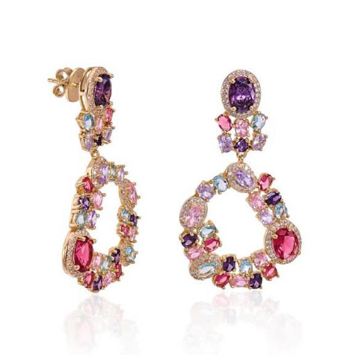 Pendientes de plata de primera Key con baño de oro amarillo 18K y circonitas de colores.