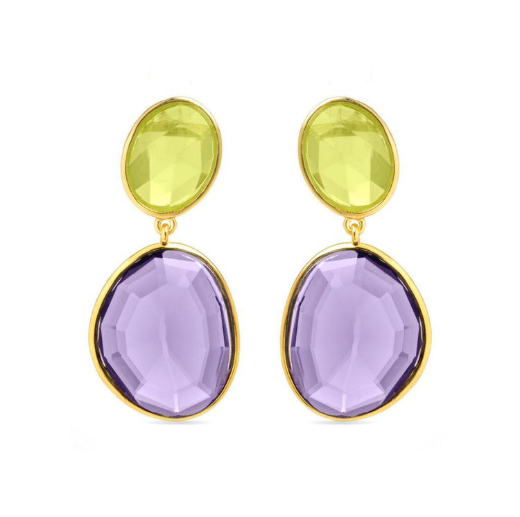 Pendientes de plata 925 con baño de oro amarillo 18K y dos cuarzos hidrotermales de color.
