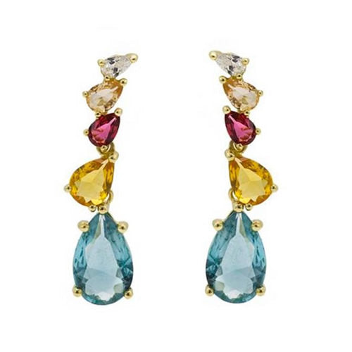 Pendientes de plata de primera ley con baño de oro amarillo 18K y circonitas multicolor.