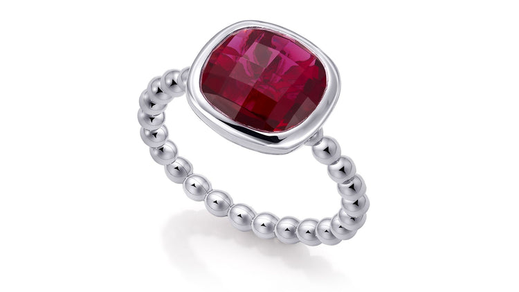 Sortija de plata 925, con brazo de bolitas y cuarzo hidrotermal de 12 x 12 mm. Tamaño de dedo: 6 (US) 12 (ESP)