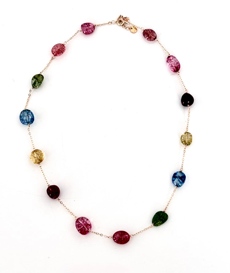 Gargantilla de piedras naturales multicolor montada en plata 925 con baño de oro amarillo de 18K.