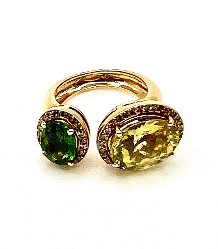 Anillo de oro amarillo con apátitos y diamantes Brown