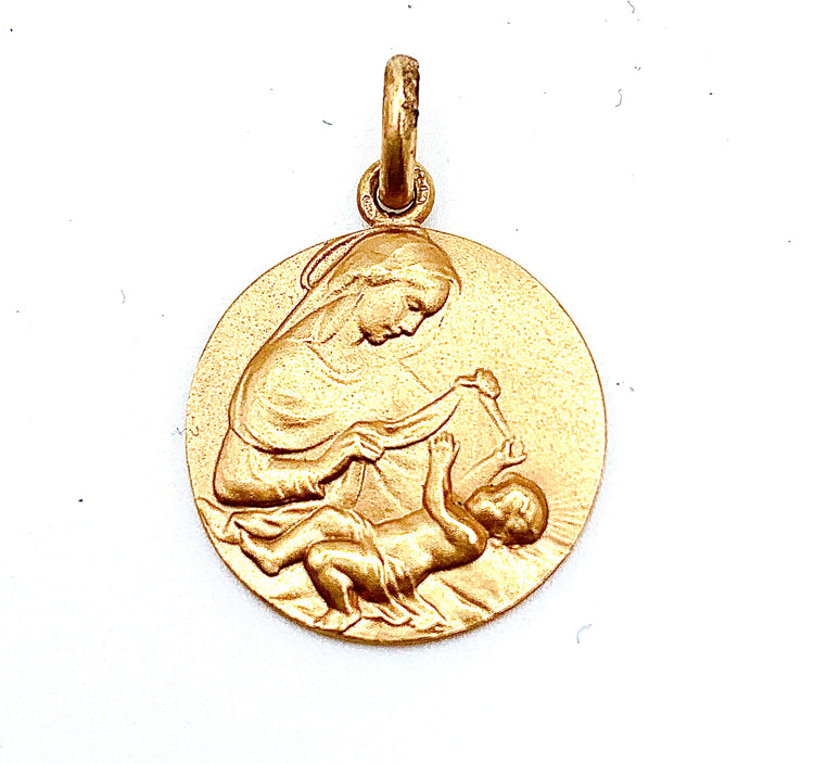 Medalla de oro amarillo de 18K mate de 18 mm de diámetro