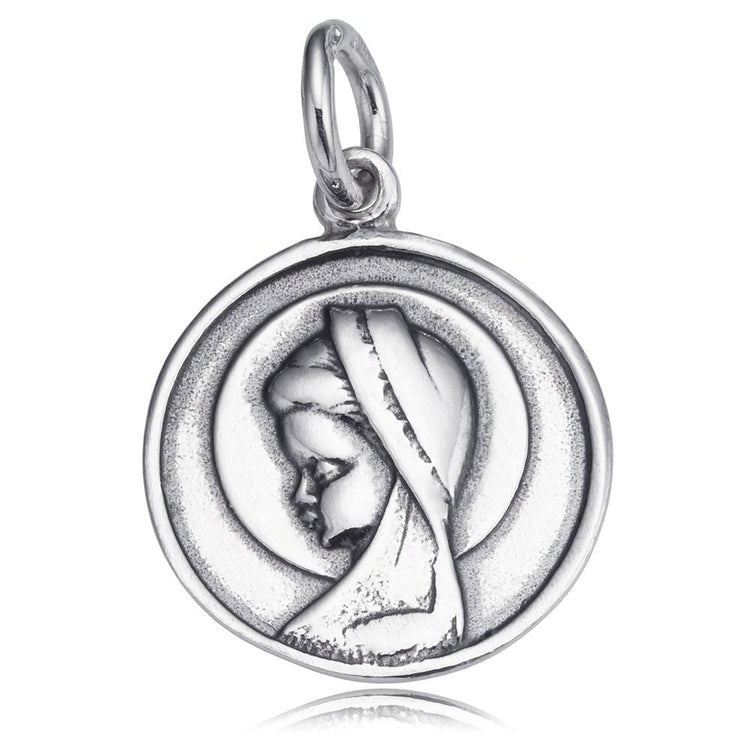 Medalla de la Virgen Niña, realiza en plata, con diámetro de 16 mm.
