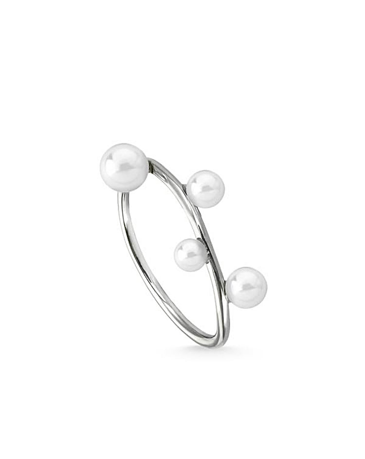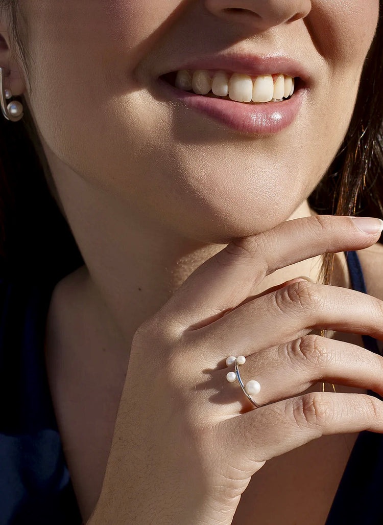 Anillo fino de plata y cuatro perlas