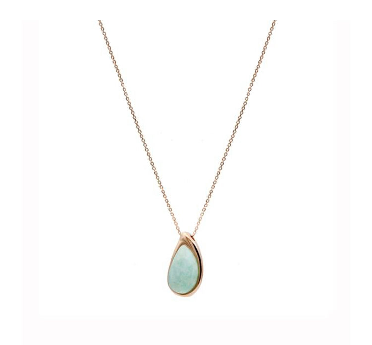 Colgante de gota de piedra natural de plata rosa con cadena.