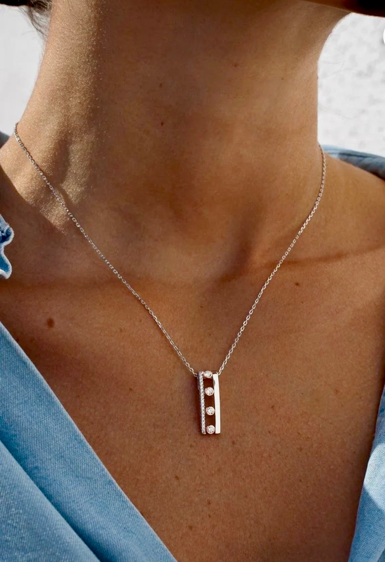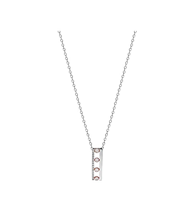Colgante de plata y plata rosa con 4 circonitas centrales y laterales con cadena.