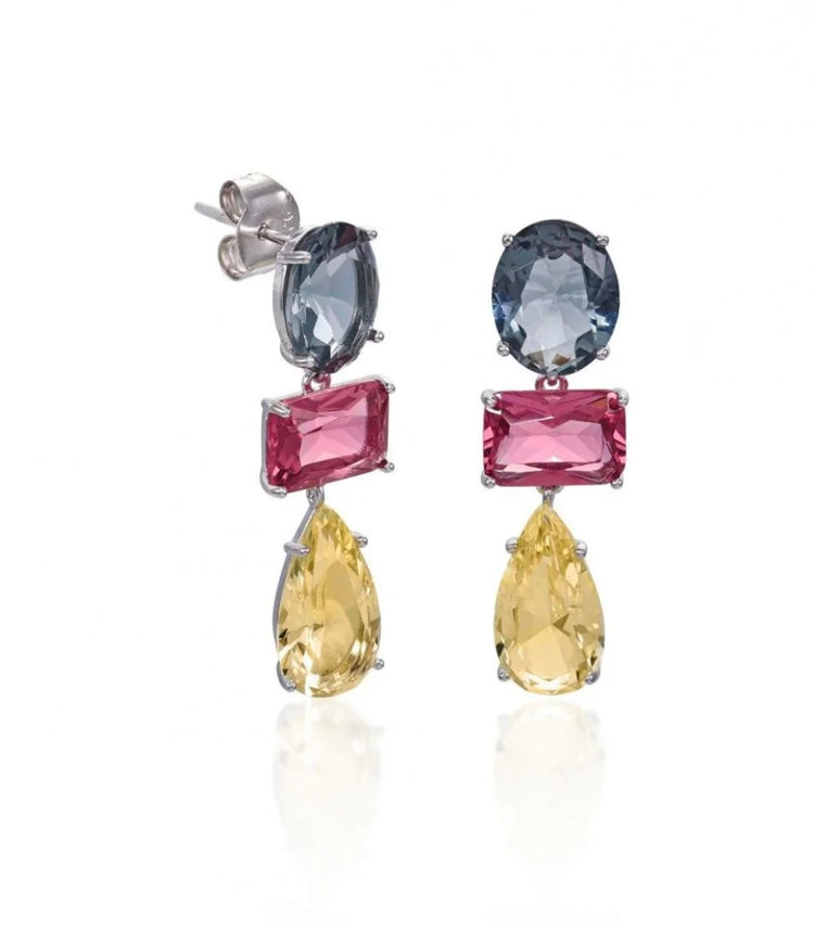 Pendientes de plata largos con 3 piedras de color