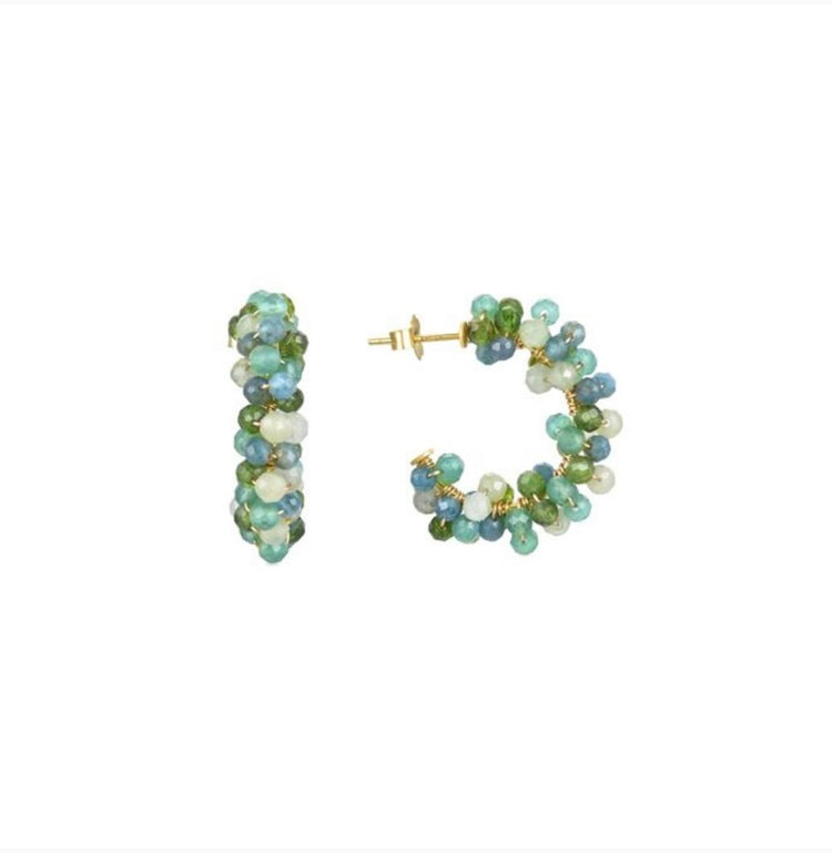 Pendientes de plata 925 bañados en oro amarillo 18k y cuajados de piedras de diferentes tonos verde.