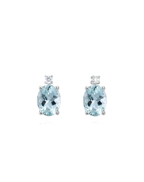 Pendientes de oro Blanco 18K con piedras de Aguamarina y diamante encima.