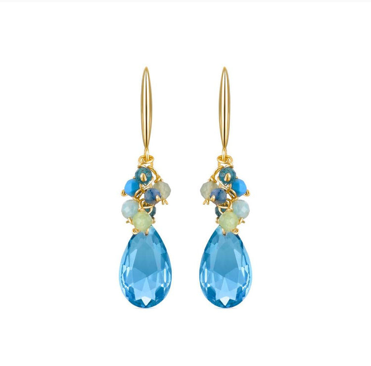 Pendientes de plata 925 con baño de oro amarillo de 18K y cuarzo hidrotermal azul.