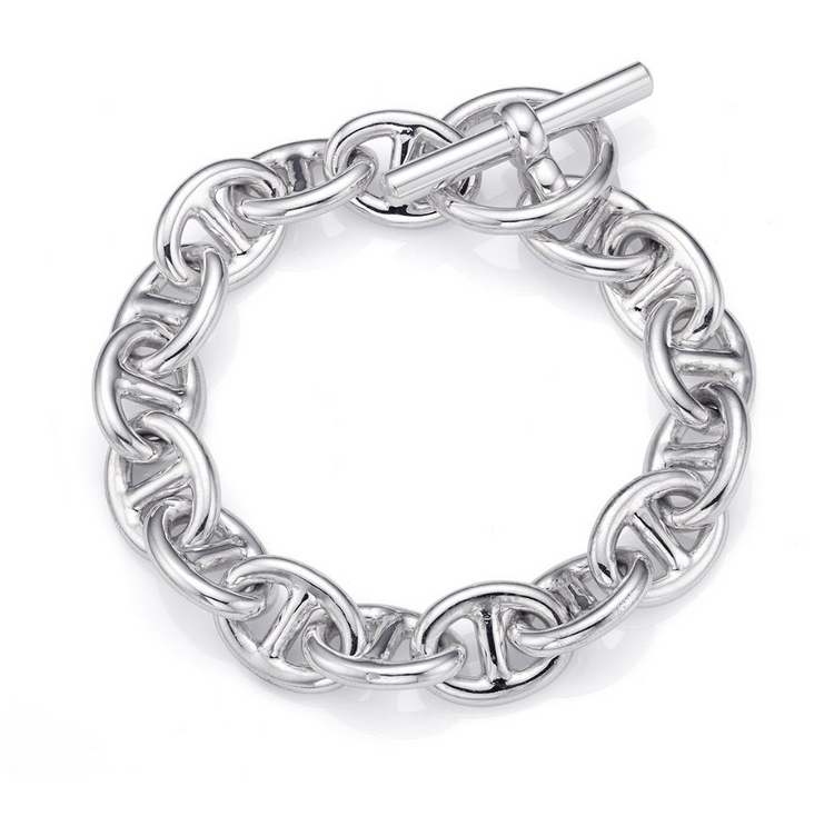 Chain bracelet with solid silver links in the shape of a classic hawser.