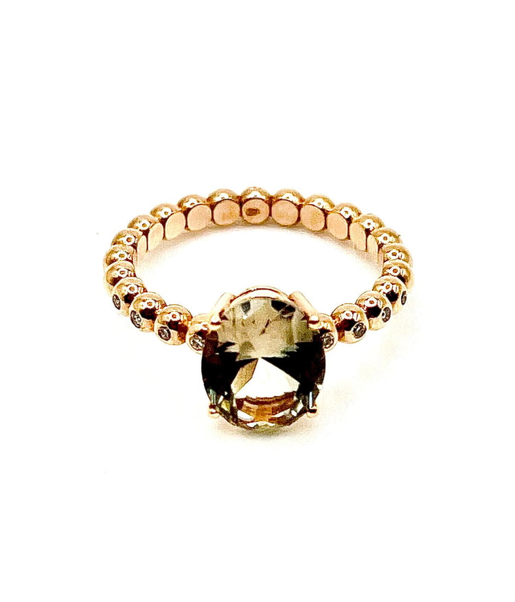 Anillo de oro rosa 18k con sutanita en el centro y 8 diamantes pequeños en el brazo de 0,10 ct