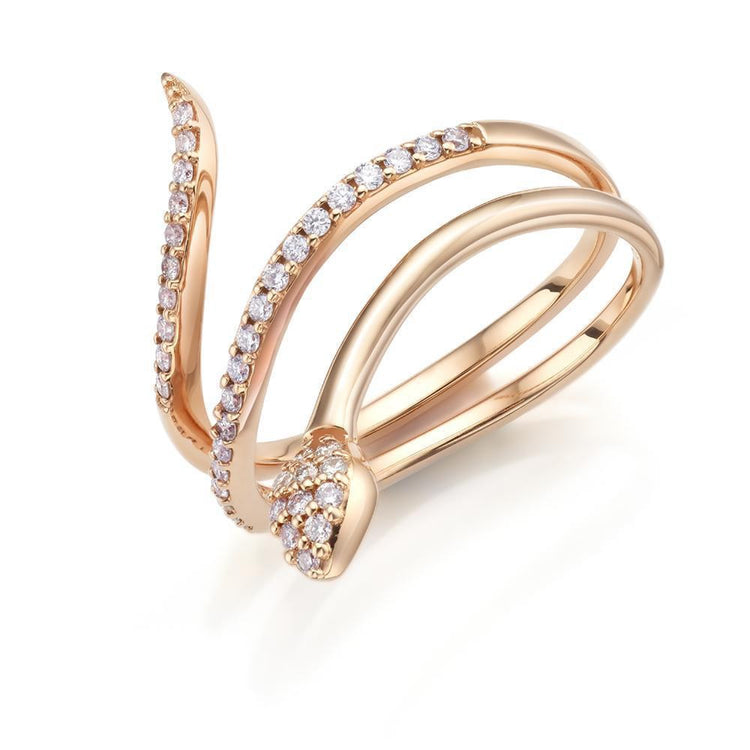 Anillo de oro rosa de 18K con forma de serpiente cuajada de brillantes de 0,28ct.
