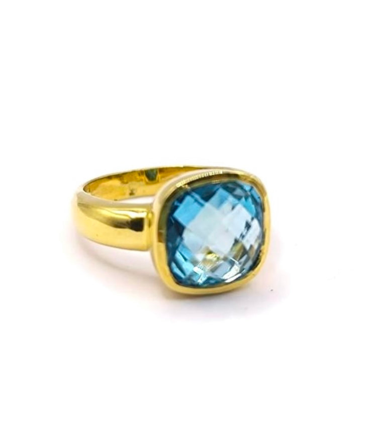 Anillo de oro amarillo 18K con una piedra natural cuadrada en el centro.