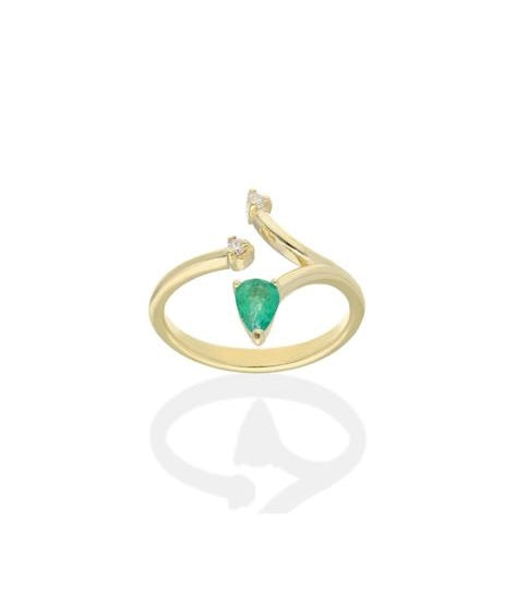 Anillo de oro 18K con una esmeralda de 4x5mm y 2 brillantes pequeños.