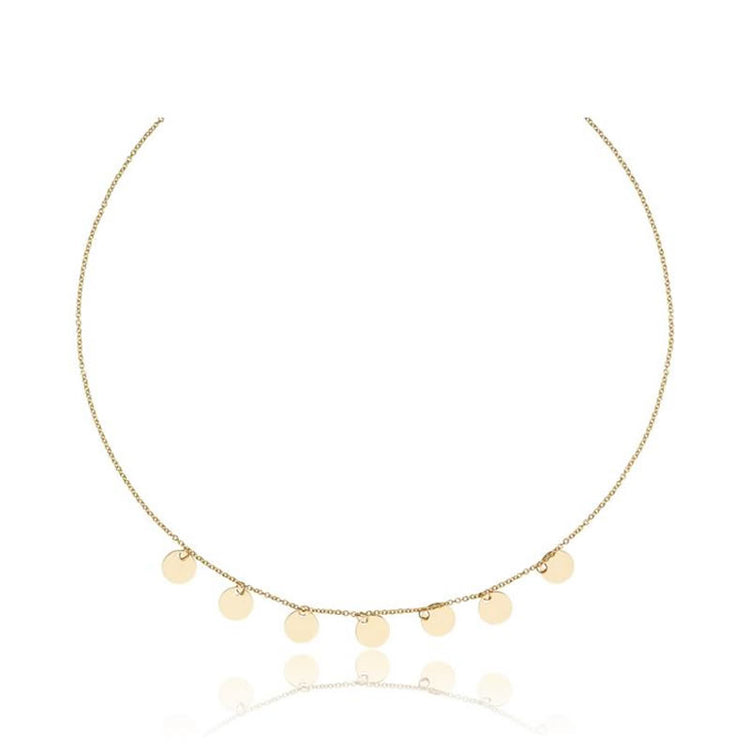 Gargantilla de oro amarillo de 18K con 7 chapas de 8mm de diámetro.