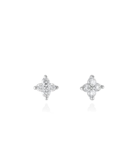 Pendientes de Oro Blanco 18K en forma de florecilla con 4 diamantes.