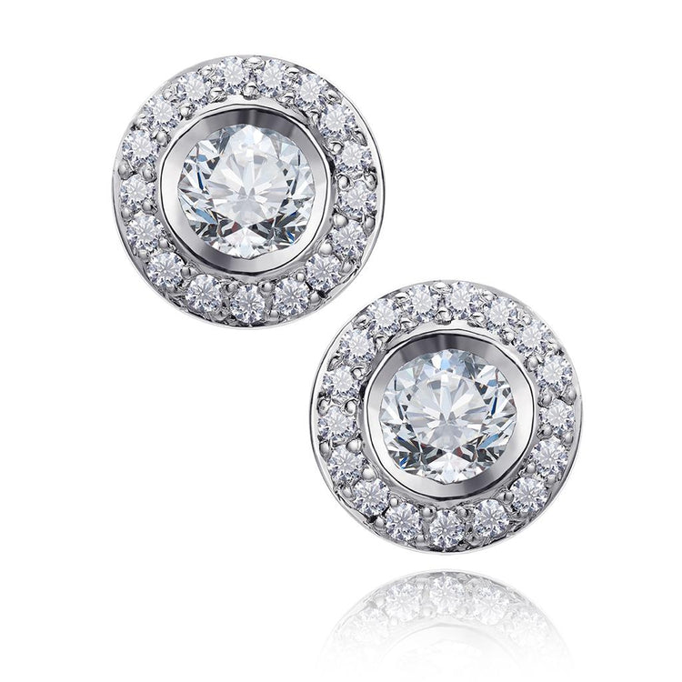 Pendientes de oro blanco, con diamantes centrales de 0,25 ct cada uno y orla de diamantes de 0,140 ct en total. Peso de oro: 3,100 g