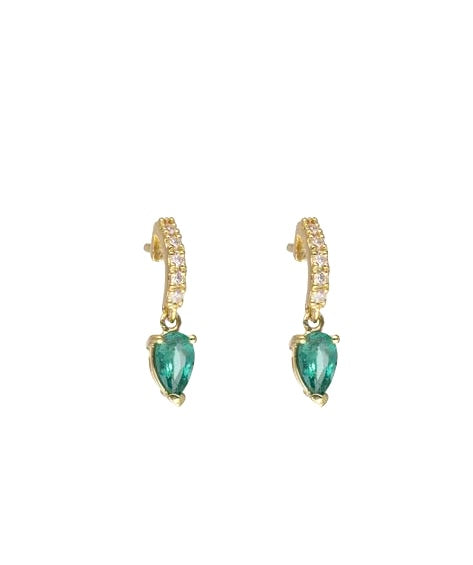 Pendientes medio aro de diamantes y oro 18K con Esmeralda colgando.