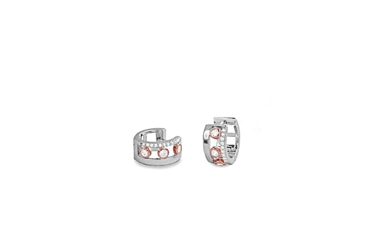 Aretes pequeños de plata y plata bañada en oro rosa y circonitas
